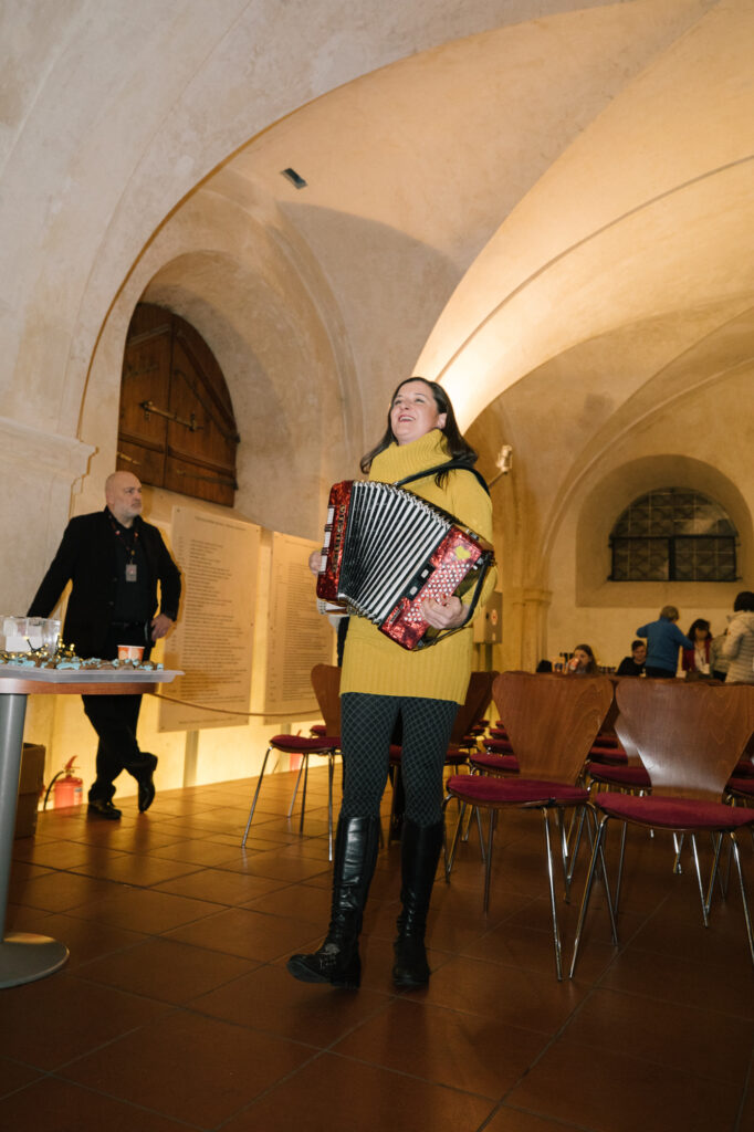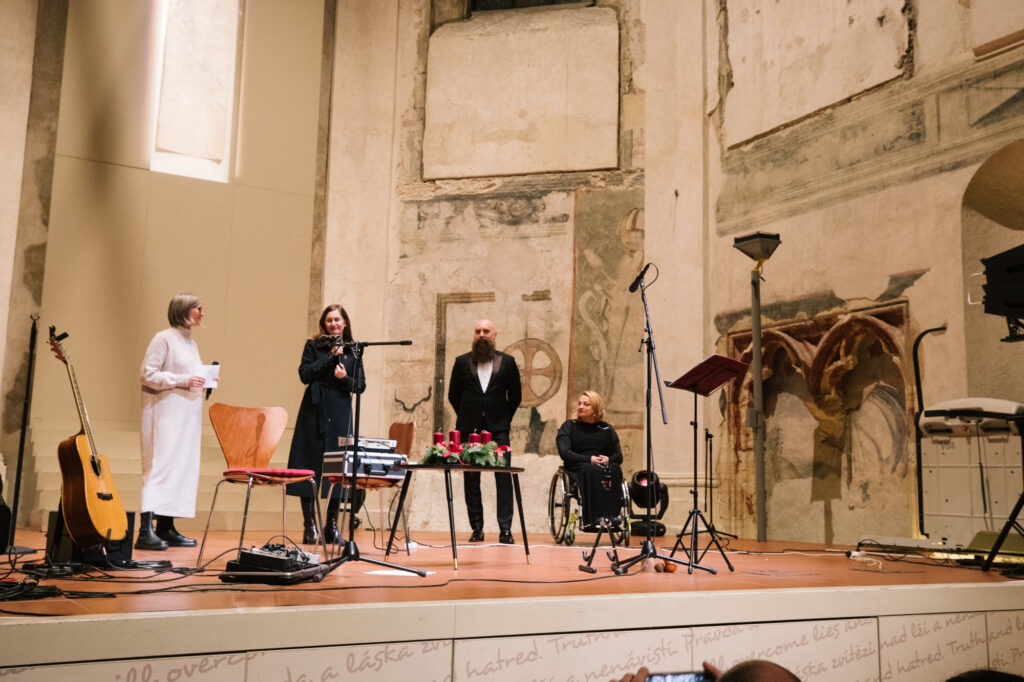 Večer moderovala básnířka Lenka Kuhar Daňhelová. Adventní svíce zapálily dvě výrazné ženy: Klára Laurenčíková, zmocněnkyně pro lidská práva, která navíc přidala emotivní proslov, a právě Iva Bittová. Za CZEPA hovořili o významu naší podpory a našeho komplexního působení v neziskové oblasti podpory lidí po poranění míchy výkonný ředitel Adam Spálenský a ředitelka Alena Jančíková.